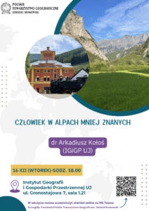– „Człowiek w Alpach mniej znanych” – dr Arkadiusz Kołoś (16.12.2025r.)