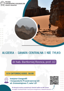 – „Algieria – Sahara Centralna i nie tylko” – dr hab. Bartłomiej Rzonca, prof. UJ (08.04.2025r.)